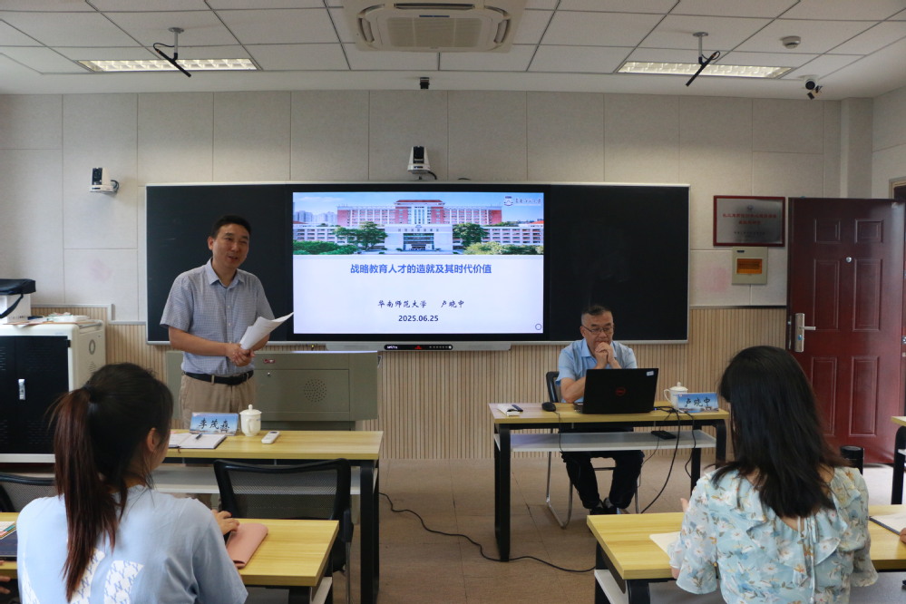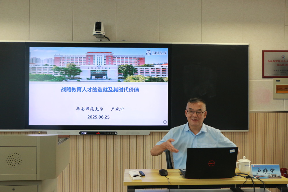 2025年6月25日下午,教育学院2025年“太湖教育论坛”(七)在我院10幢308顺利举办。本次论坛特邀华南师范大学二级教授、教育部“长江学者”特聘教授,国家“万人计划”哲学社会科学领军人才,中宣部“文化名家暨四个一批人才”,国务院政府特殊津贴专家卢晓中,作题为“战略教育人才的造就及其时代价值”的专题讲座。本次论坛由教育学院执行院长李茂森主持,学院部分教师及学生参加。