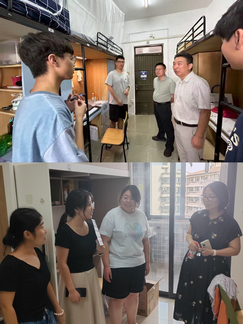 2025年秋季开学初,为帮助新生快速融入大学生活、掌握国际学生返校实况,教育学院(js3845金沙线路)党政领导班子、新生班主任、辅导员及学生骨干组成多支走访小组,深入本科、研究生与国际学生宿舍,开展随机走访工作。各小组通过面对面交流、安全隐患排查、学业规划指导及国际生签证情况了解等方式,传递学院关怀与新学期期望。