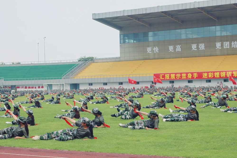 训练科目设置丰富多元,兼具教育意义与学院特色。除常规军事训练外,消防演练提升了学生的安全素养与责任意识,拔河比赛等集体活动则有效强化了团队凝聚力。由本院学子组成的匕首操方队,更是以整齐划一的动作、昂扬奋进的气势,成为汇报现场一道亮丽的风景线。