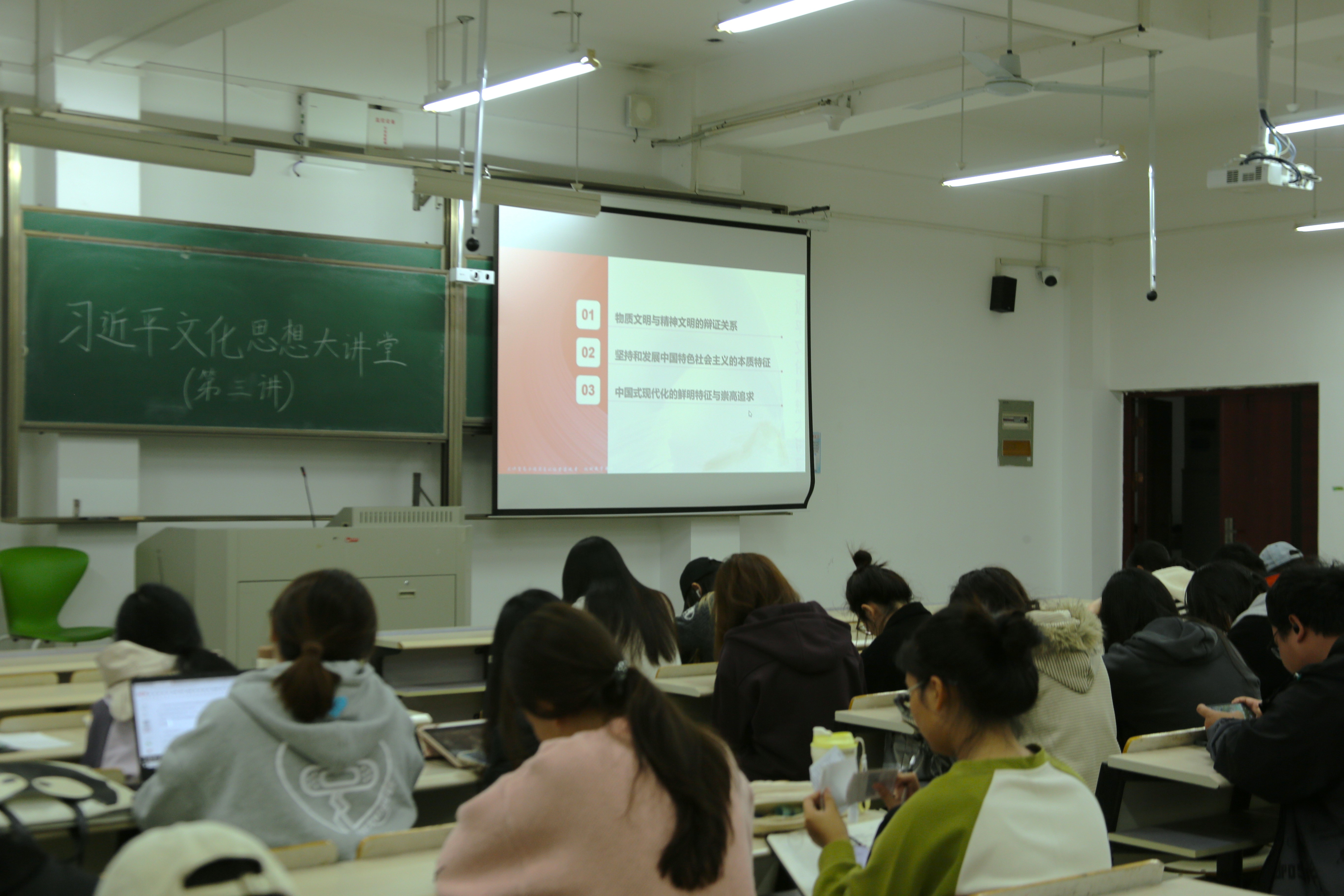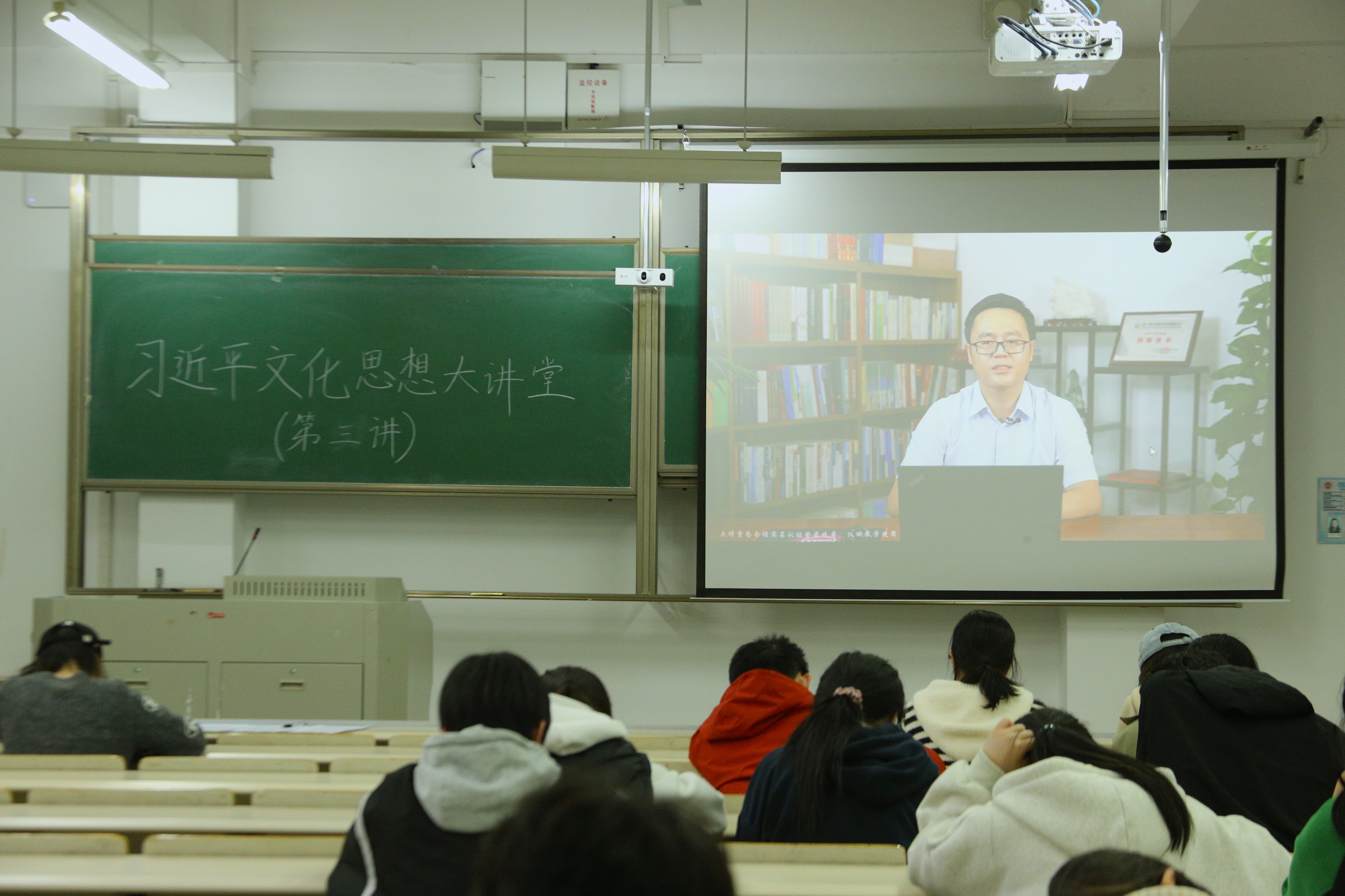 1114日,学院在32-101教室举办“习近平文化思想大讲堂”(第三讲)专题学习活动。学院党务管理中心组织,各年级学生代表共60余人参加。