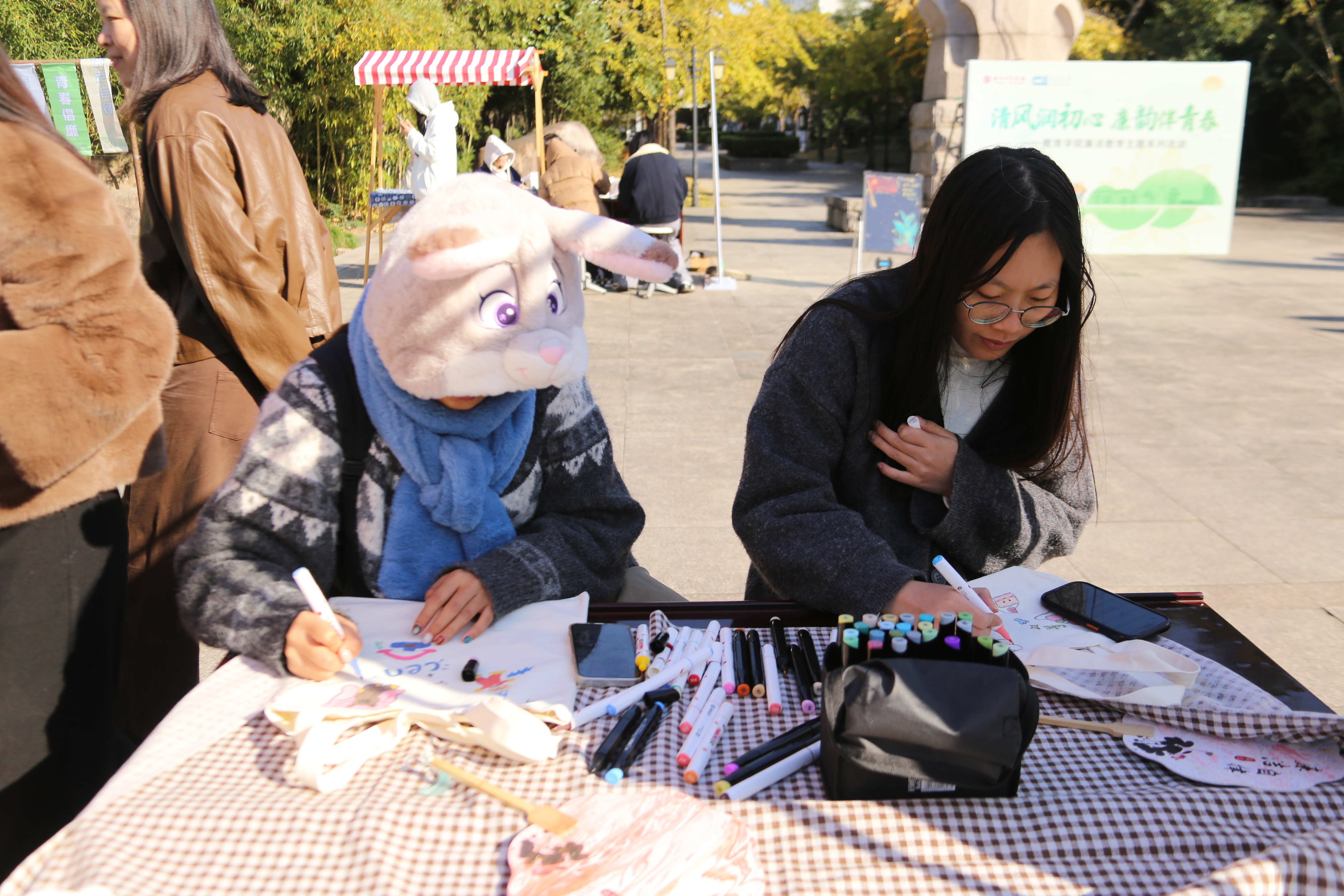 在帆布包绘制区,师生化身“廉洁设计师”,以画笔勾勒莲花、翠竹等象征廉洁的意象,将素色帆布包转化为兼具美感与教育意义的“行走的廉洁宣言”,让清风正气融入日常点滴。