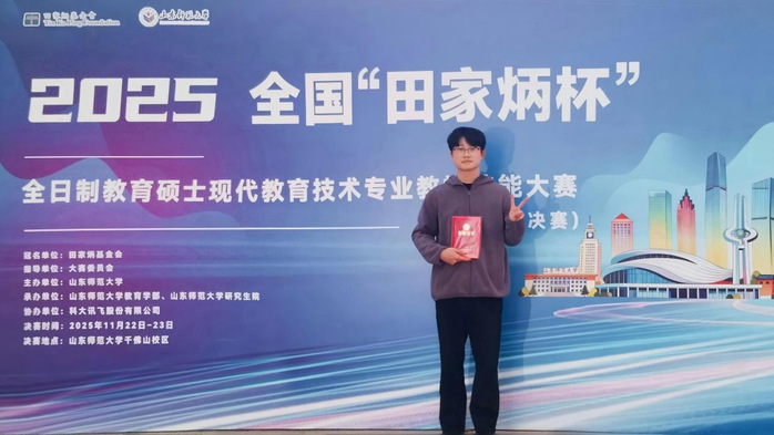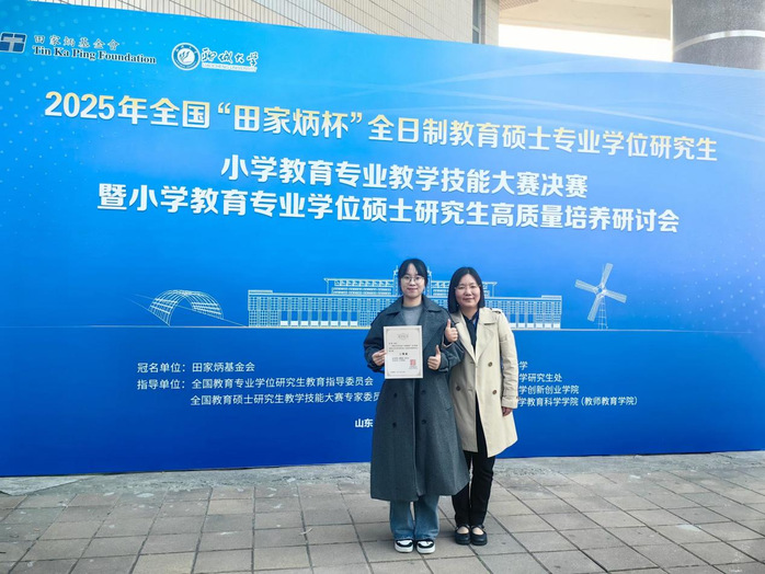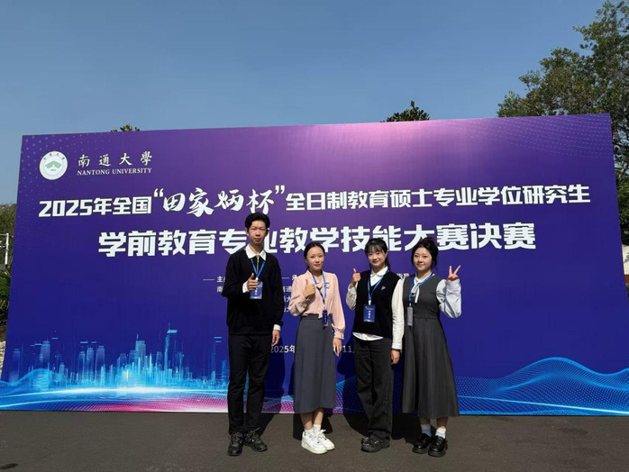 近日,2025年全国“田家炳杯”全日制教育硕士专业学位研究生教学技能大赛学前教育、现代教育技术专业决赛分别在南通大学、山东师范大学顺利举行。我院选手延续出色表现,学前教育专业研究生荣获二等奖1项、三等奖2项、优设奖1项;现代教育技术专业研究生荣获二等奖1项。